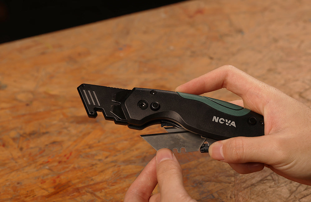 Crafted from tough ABS and metal, this all-in-one workhorse gives you a utility knife, Phillips and flathead screwdrivers, a pry bar/nail puller, cord-cutting notch, and built-in belt clip. From opening boxes and slicing carpet to scoring drywall or pulling nails, the Nova Pro handles jobs around the house, office, garage, or campsite with ease. The foldable design tucks neatly into your pocket—always ready for whatever task comes next.